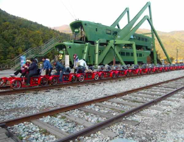 Don’t drive on the railroad tracks? Good advice for Bill Murray but the Groundhog Day star never rode on South Korea’s Jeongseon Auraji Rail Bike route.